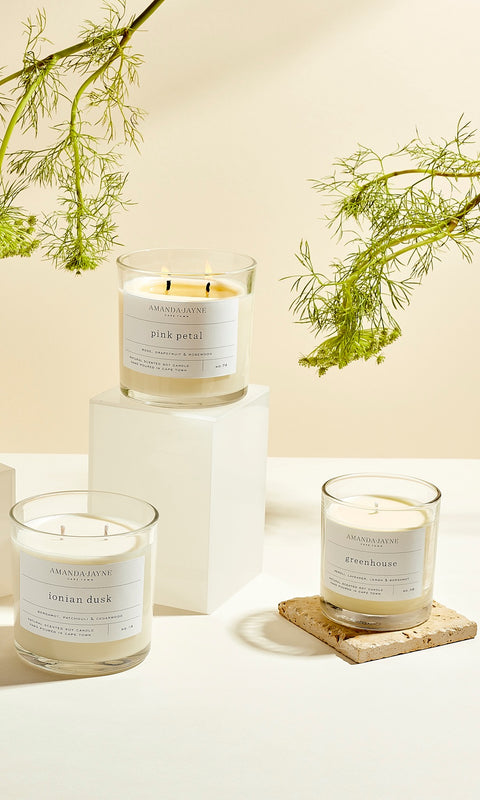 Amanda continues to be a part of the signature small batch process of hand pouring, mixing and blending. Her impeccable sense of quality is showcased in every Amanda-Jayne product.